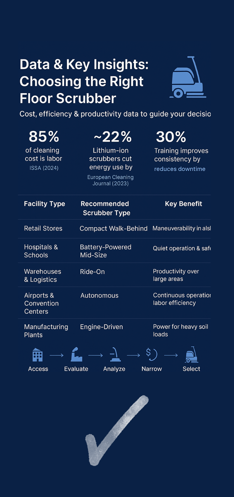 Choosing the right floor scrubber is a decision with multiple variables that blends facility layout, workforce needs, sustainability goals, and financial strategy.